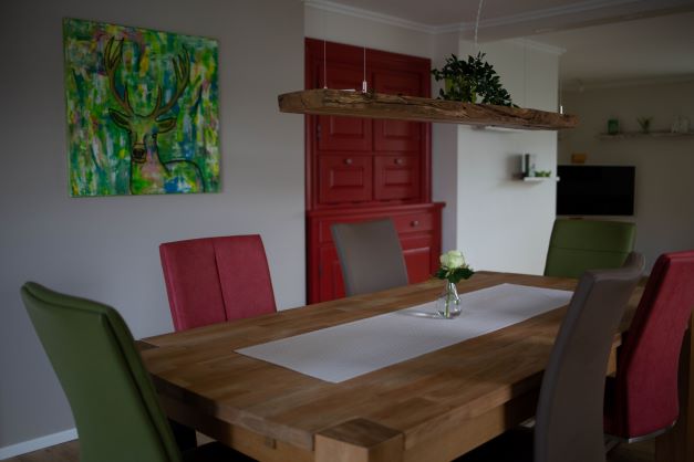 Unsere Ferienwohnung „Berghirsch“ liegt im Ortskern von Hirschberg (Ortsteil Warstein). Sie befindet sich im Erdgeschoß, verfügt über einen eigenen Eingang, eine Terrasse mit Gartenblick und ist barrierefrei.
